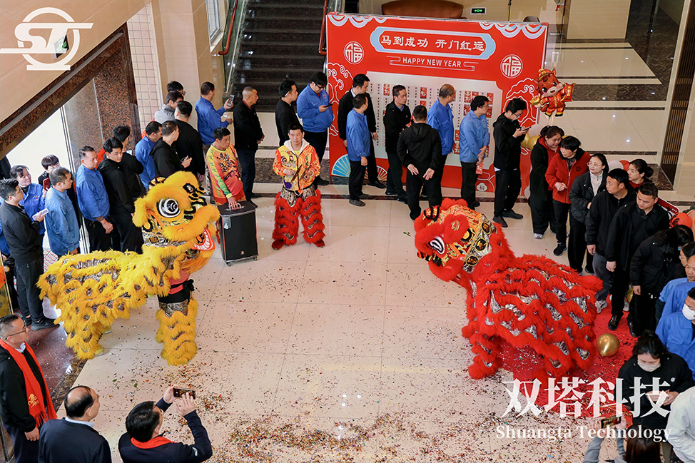 At the ceremony, the lion dance was undoubtedly the highlight. The professional team’s superb skills fully displayed the agility and majesty of the auspicious lion. In particular, the moment when the lion climbed high to “pluck the green” drew thunderous applause from the crowd, symbolizing the pioneering spirit of Shuangta’s employees to dare to climb and strive for excellence. The stirring drumbeats were inspiring, and the lively auspicious lion brought blessings far and wide, injecting powerful cultural momentum into the company’s development in the new year.